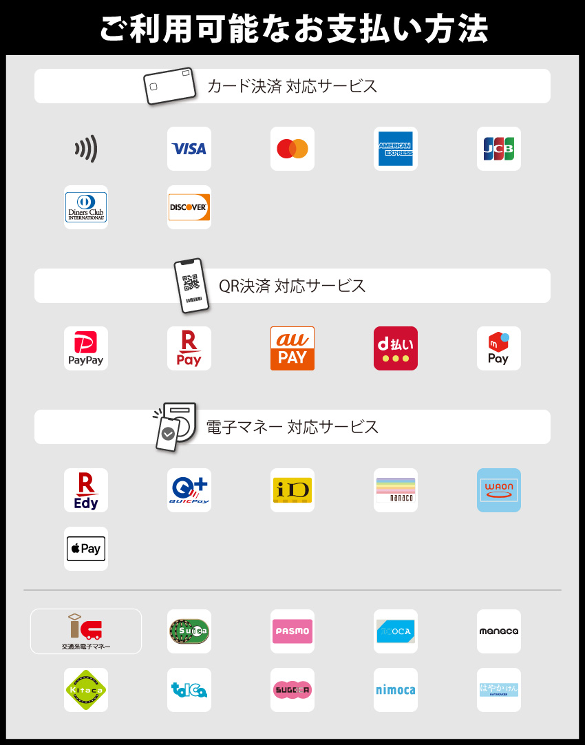 お支払いは現金の他、カード各種もお取り扱いしています!